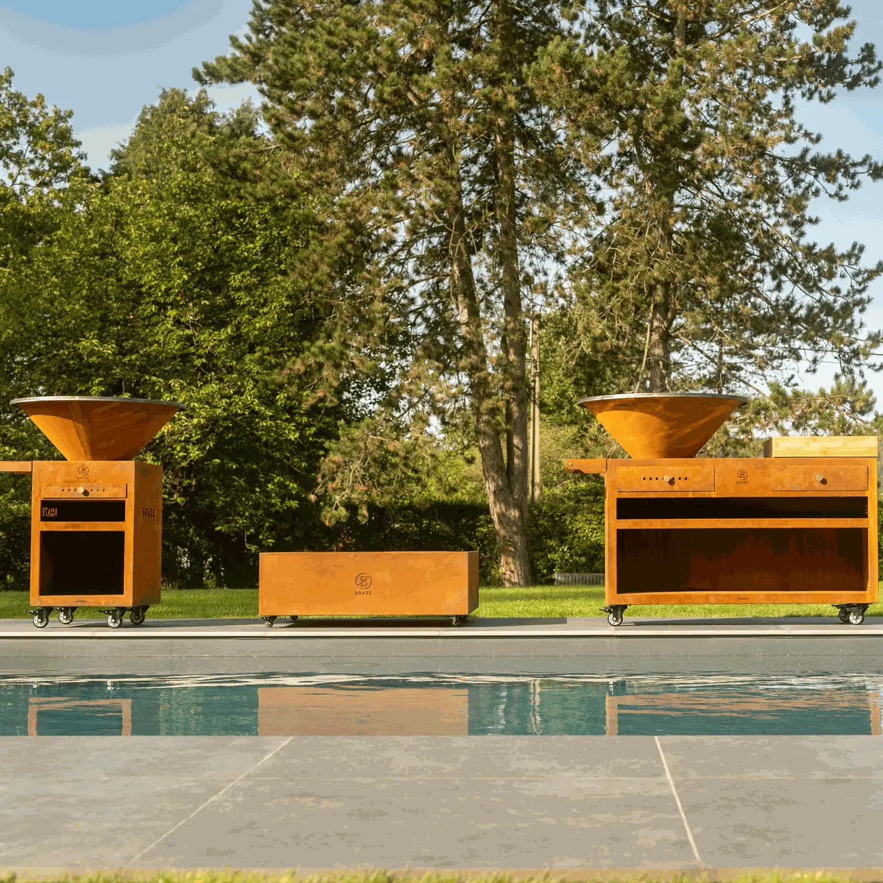 BRAZE offre des produits de barbecue conçus pour les amateurs de grillades. Les produits sont faits en acier corten robuste et durable, et sont dotés d'un design ergonomique qui permet une utilisation et une manipulation faciles. Le design est élégant et intemporel, avec des finitions modernes et des détails fins qui ajouteront une touche unique à toute terrasse.