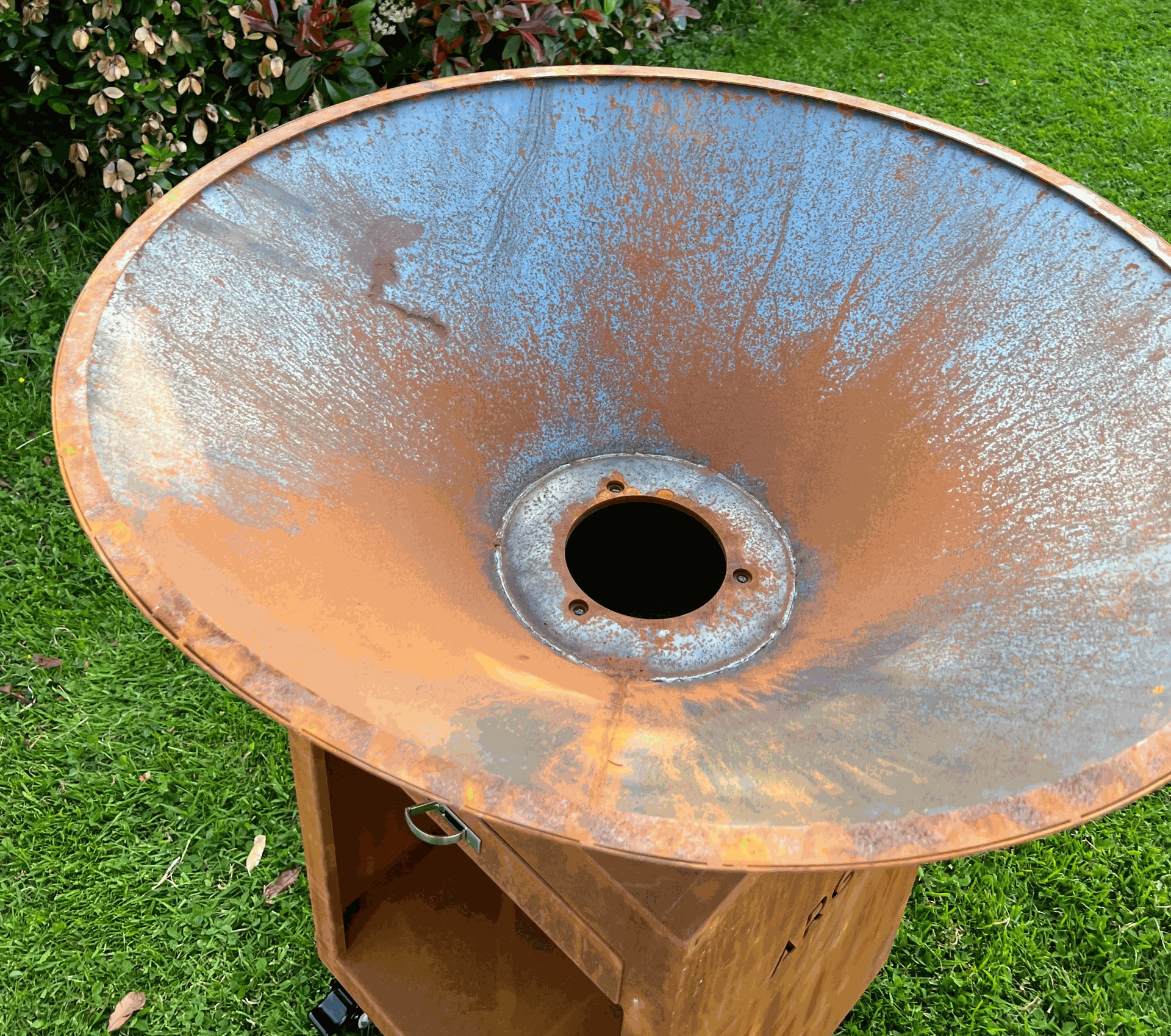• Une fois les roulettes installées, placez le barbecue sur ses roues et positionnez le cône sur la base.